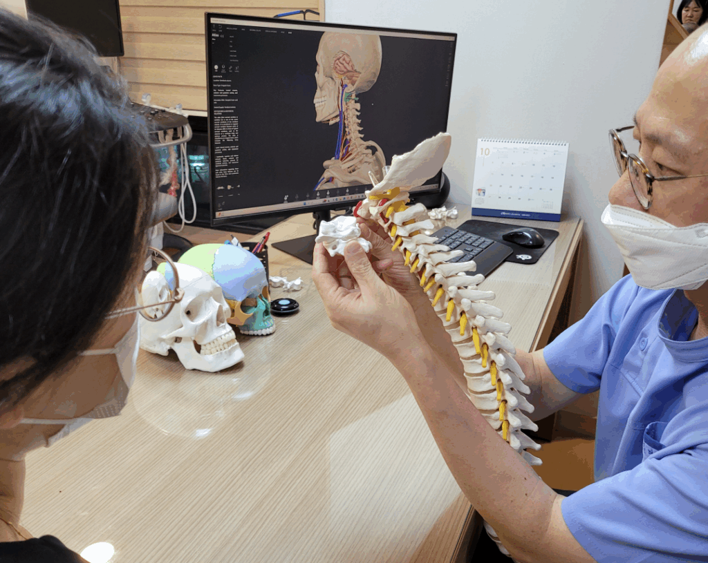 頭蓋頸椎手技療法は個人ごとに差がありますが、このような過程で進行されます。構造の変形と機能の障害は個人ごとに異なるため、個人固有の問題点を把握し、それに合わせた治療が行われます。