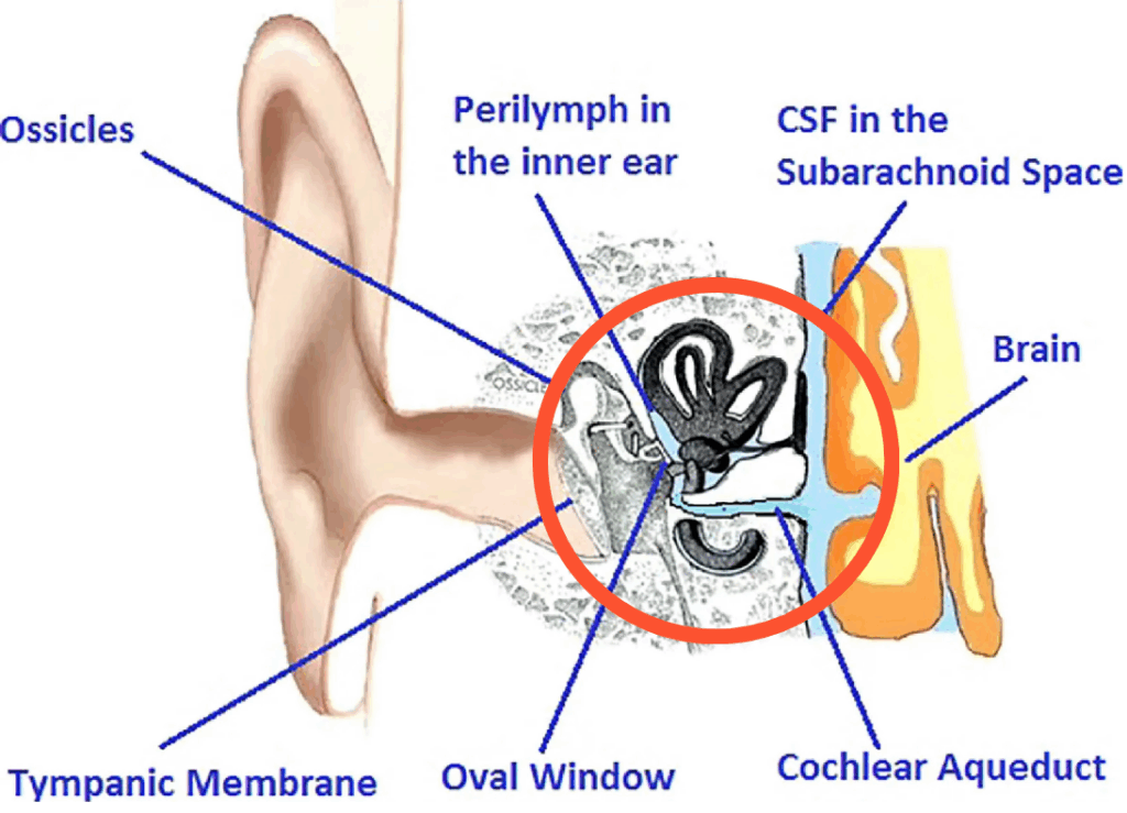 脳脊髄液圧上昇 → 内リンパ圧上昇 → 内リンパ水腫誘発